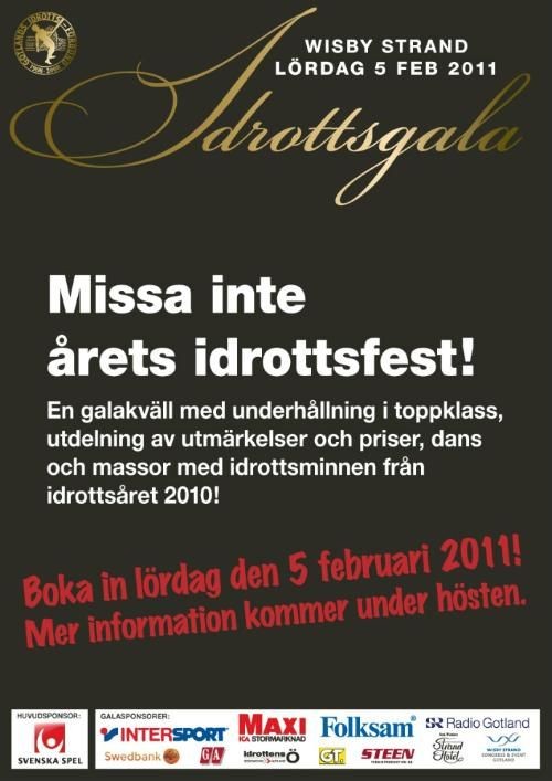 Gotlands Idrottsförbunds Idrottsgala som är den 5 februari vid Wisby/Strand i Visby I dag blev det även klart att Barbro "Babben" Larsson kommer att närvara. För biljetter ring Gotlands Idrottsförbund Tele: 207050